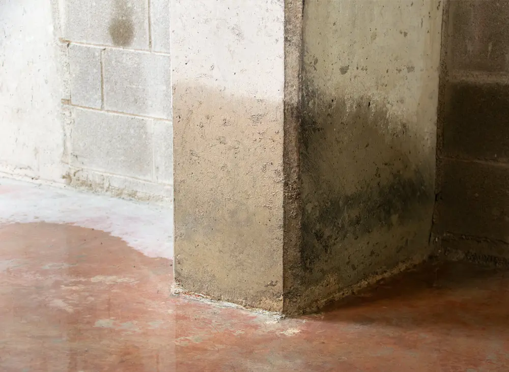 Rising damp occurs when groundwater moves up through porous building materials, such as walls or floors, by capillary action.